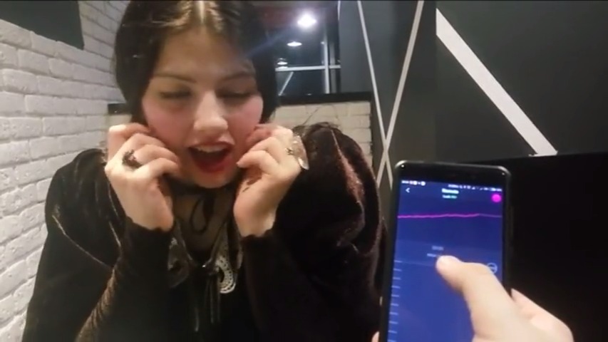 Красивую брюнетку доводят вибротрусиками до оргазма в ресторане