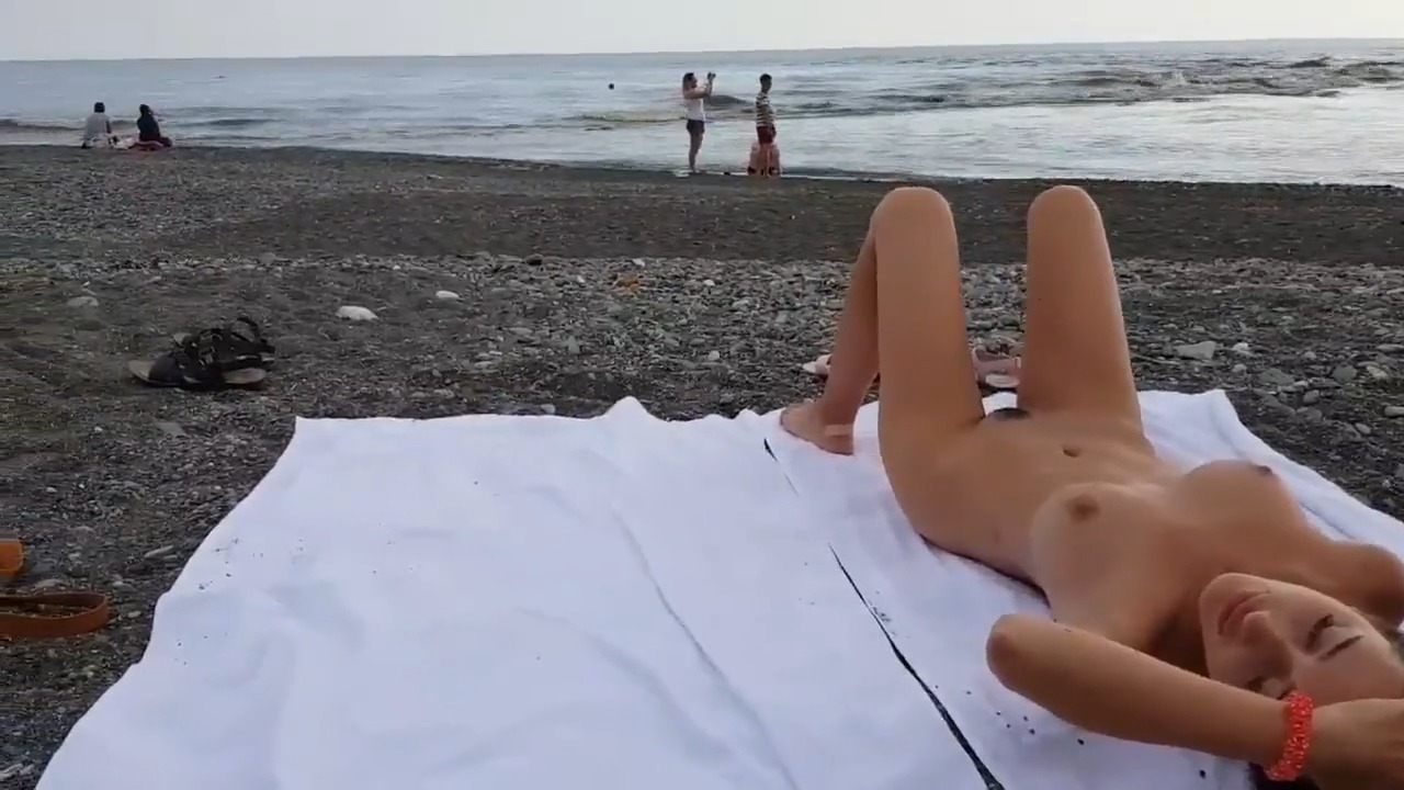 Бесстыжая красотка загорает на пляже абсолютно голая