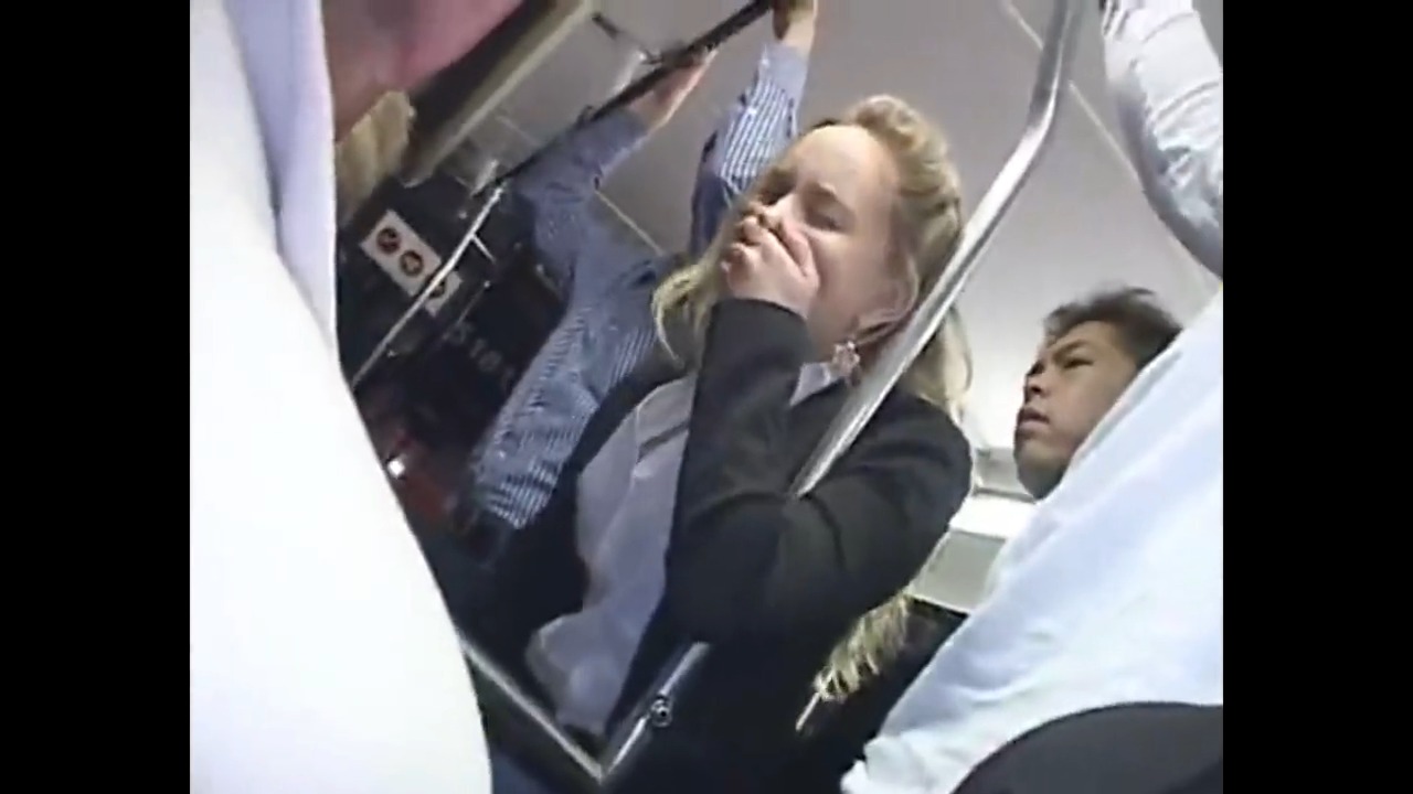 Блондинку ублажают в общественном транспорте и доводят до оргазма